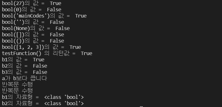 print("bool('mainCodes')의 값 = ", bool('mainCodes')) #결과 : True