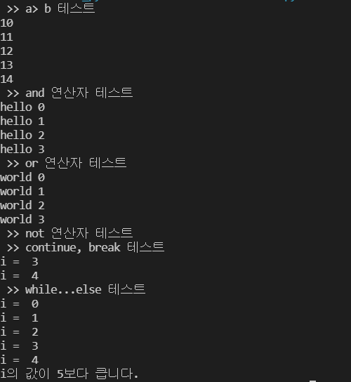 while not (a > b): #조건은 참(True)이지만 not 때문에 거짓(False)