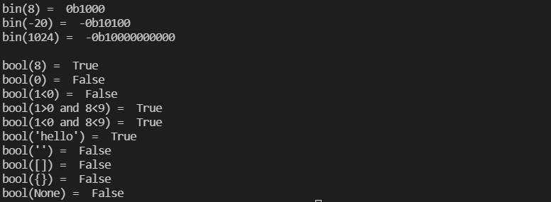 print("bool(1<0 and 8<9) = ", bool(1>0 or 8<9))