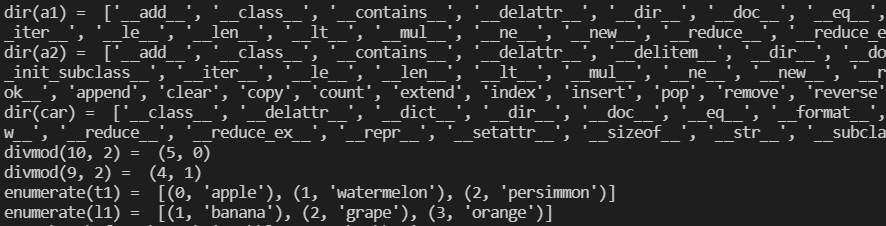 [Python:파이썬:기초] 21-7. 내장 함수: 객체의 함수와 변수 나열하기, 몫과 나머지 구하기, 객체 요소 나열 하기 함수 예제 - dir(), divmod(), enumerate() function examples