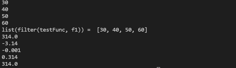 print("list(filter(testFunc, f1)) = ", list(filter(testFunc, f1)))