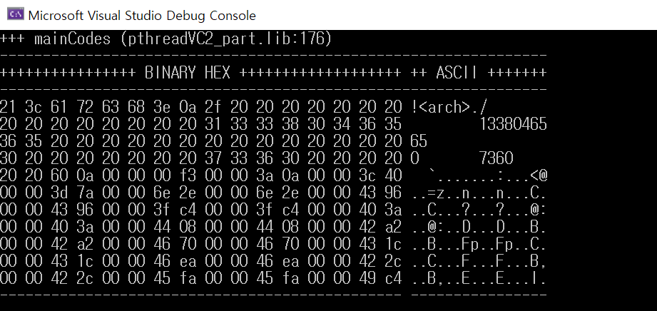 제대로 바이너리 데이터가 읽고 써지고, 송·수신 되었는지 보기 위해서는 디버거를 이용할 수도 있지만, 본인이 짠 프로그램 내에서 바이너리 데이터를 읽은 후, 그리고 쓰기 직전, 송신 직전, 송신 직후, 수신 직후 각각 특정 시점에서 확인해야 할 때 아래 예제코드를 사용하면 정말 유용합니다.