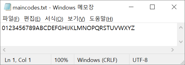 예제에서 사용한 maincodes.txt 파일의 내용입니다.
