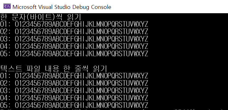 [C/C++] 텍스트 파일로 부터 한 글자(바이트)씩 읽고, 한 줄씩 읽어서 화면에 출력하기(read one character(byte) from a text file, line by line, and print it to the screen : fgetc(), fgets(), putchar() functions example)