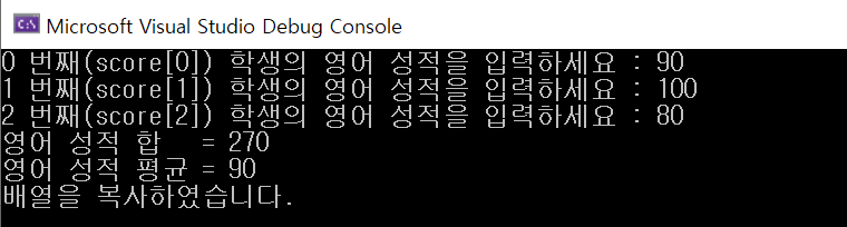 printf("배열을 복사하였습니다.\n");