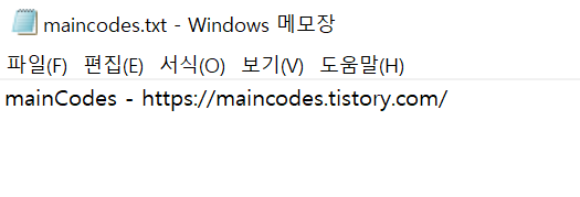 생성된 maincodes.txt 파일을 notepad와 같은 텍스트 에디터로 열어보면 다음의 문자열이 저장되어 있는 것을 확인할 수 있습니다.