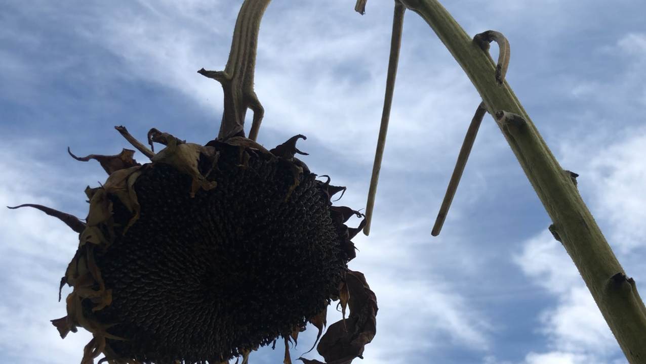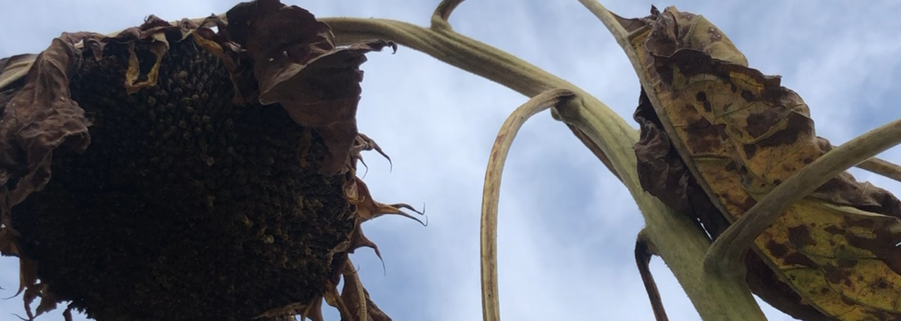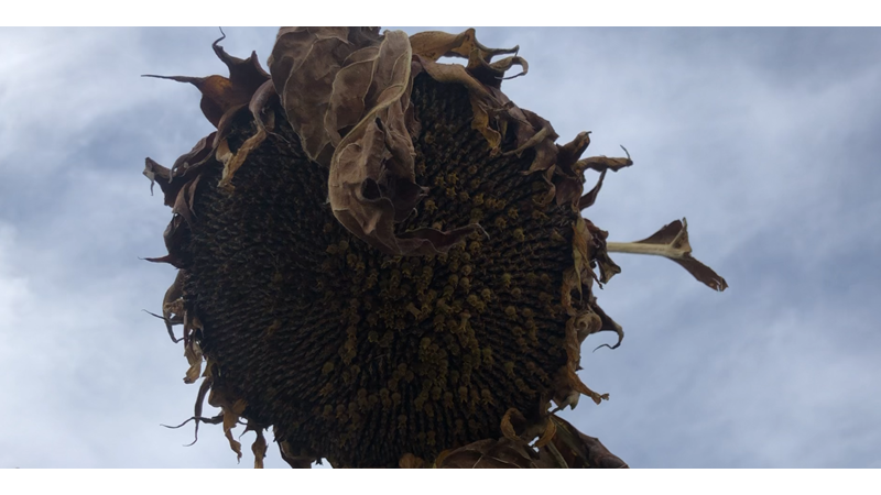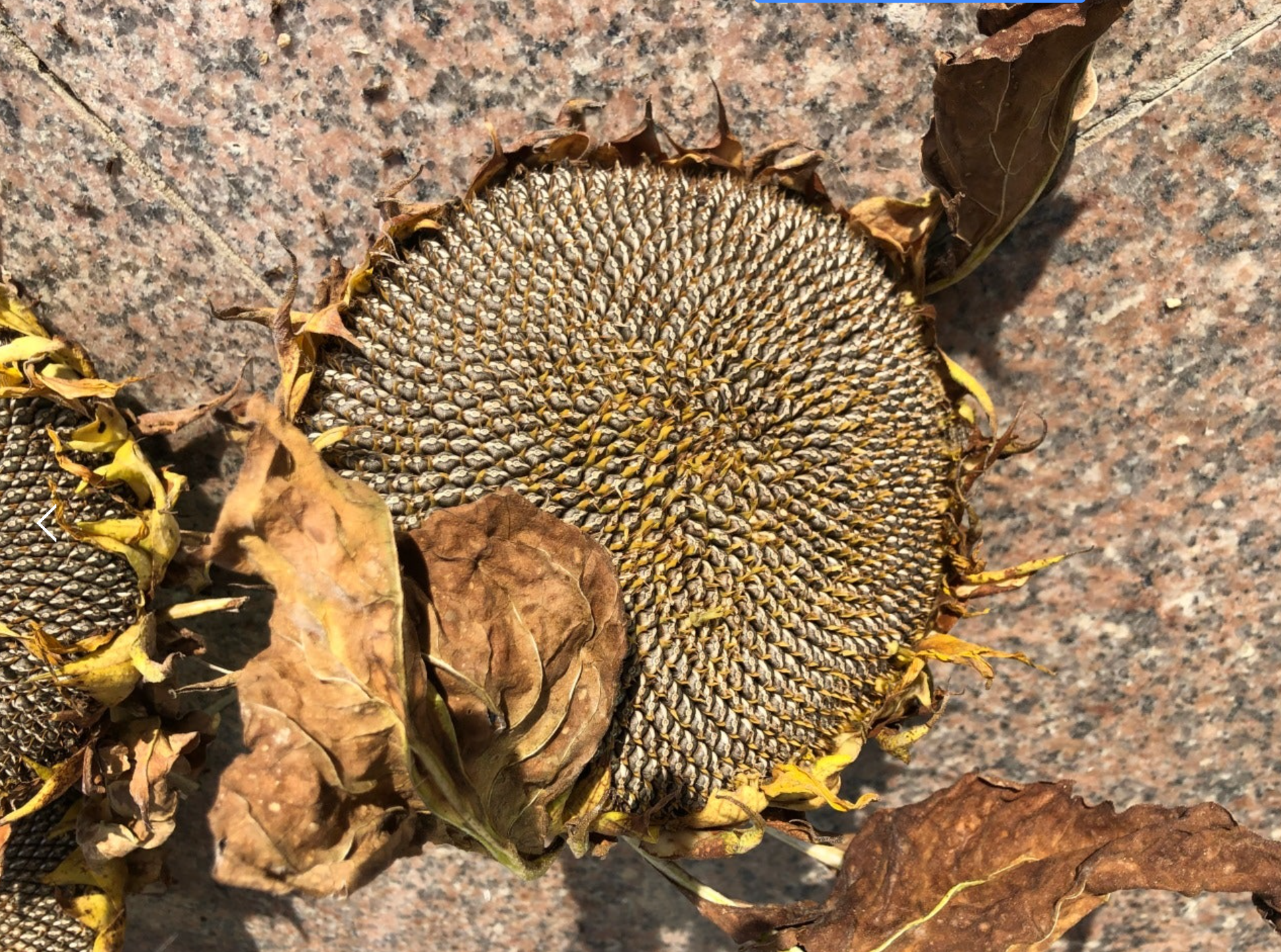 그래도 수확(?) 전 찍어 놓은 사진이 몇 컷 있어서 올려요~ 다행다행... 고개를 숙이고 있는 모습은 비슷하지만 시간이 지나니 생생했던 해바라기 얼굴과 잎이 이렇게들 변했습니다. 불쌍불쌍