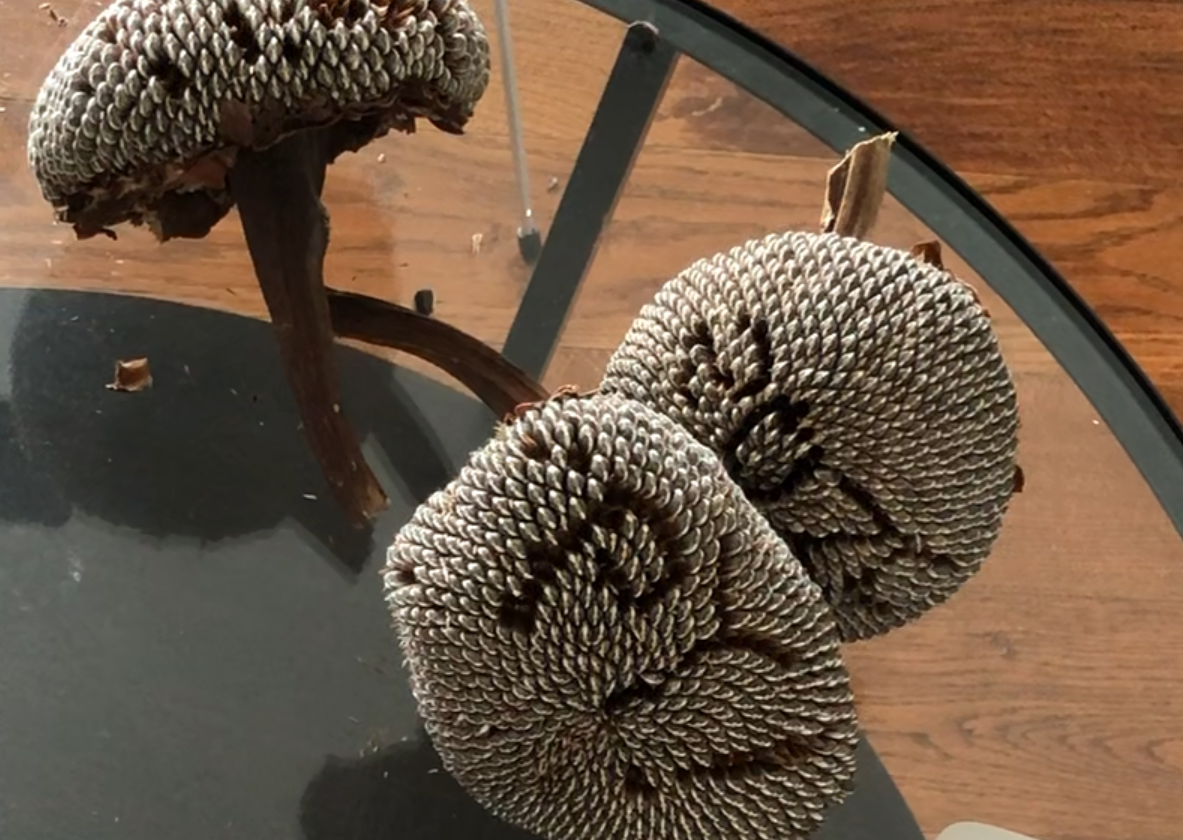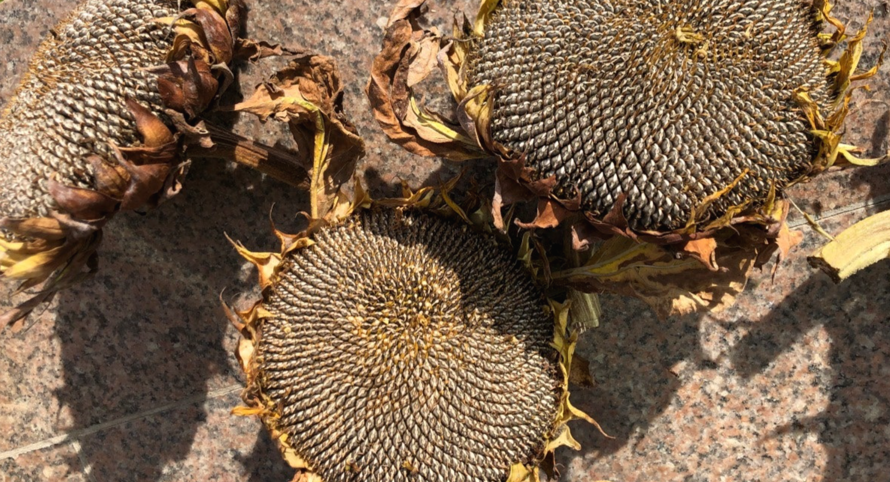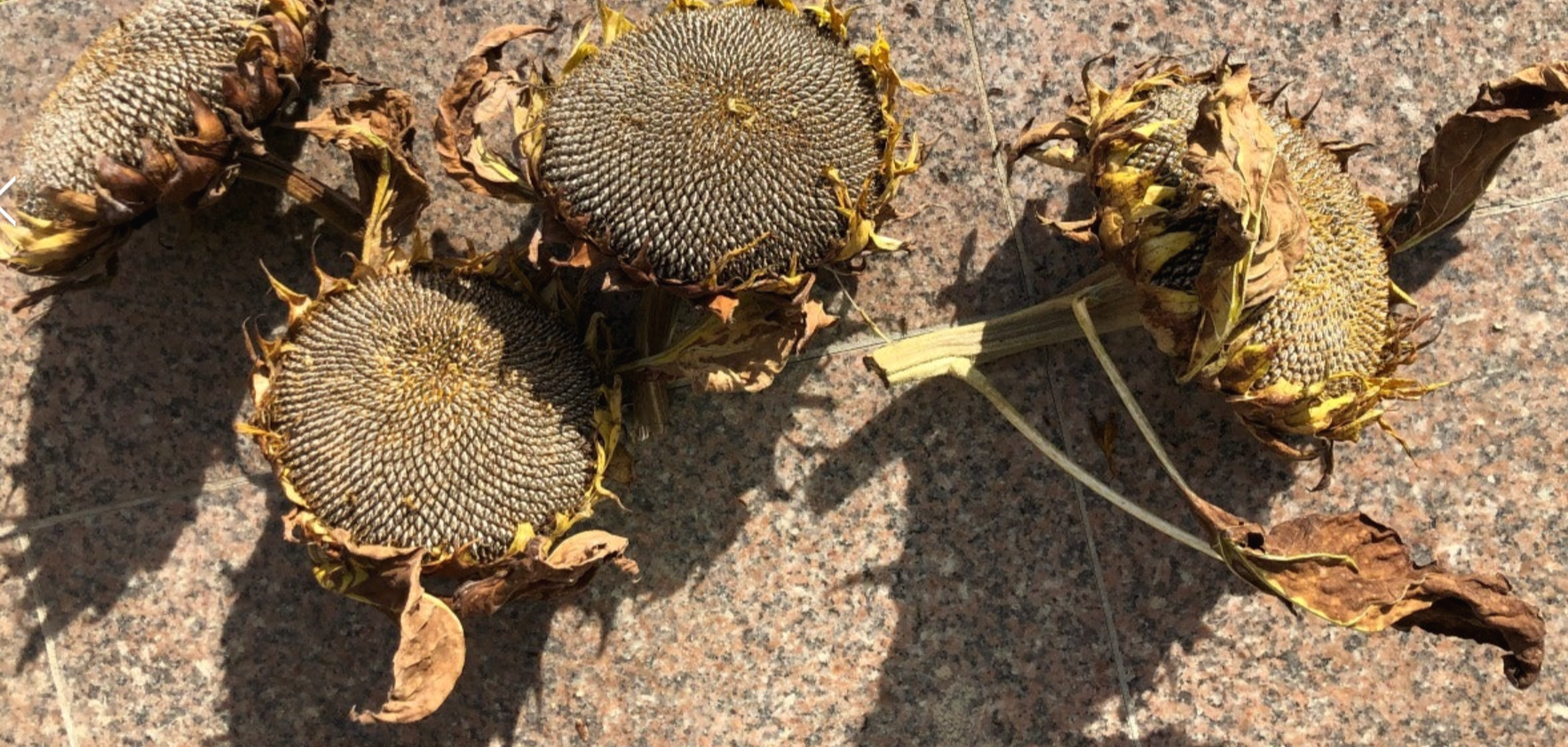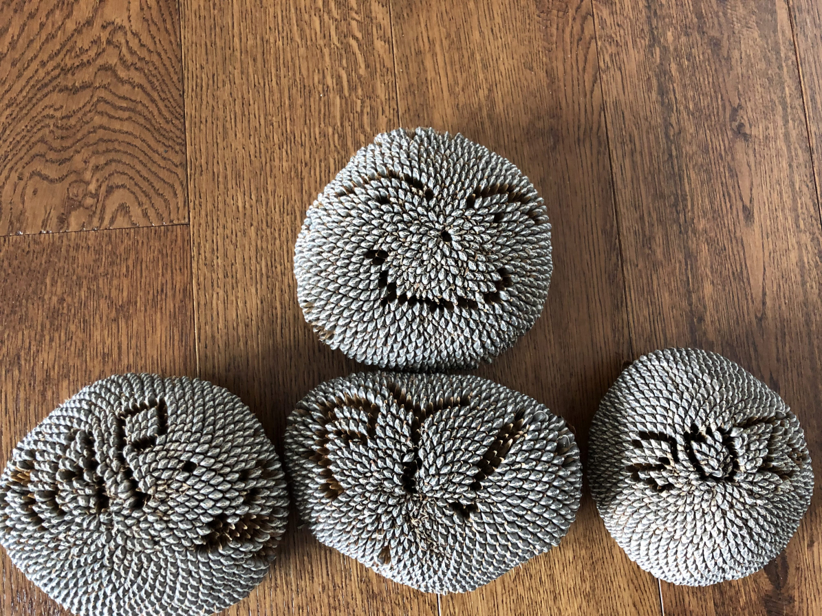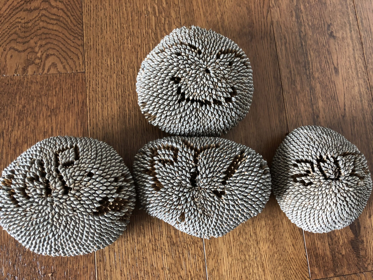 짜잔!! 수확후 해바라기들 사진이랍니다. 더 많은 줄 알았는데 4개였네요. 씨가 꽉~ 차 있지요 ? 이때가 더 보기 좋은것 같네요. -_-+