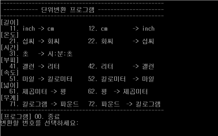 printf("변환할 번호를 선택하세요: ");