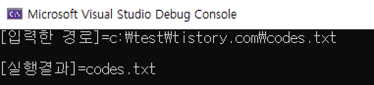 - 전체 경로 "c:\\test\\tistory.com\\codes.txt" 에서 "codes.txt"만 추출