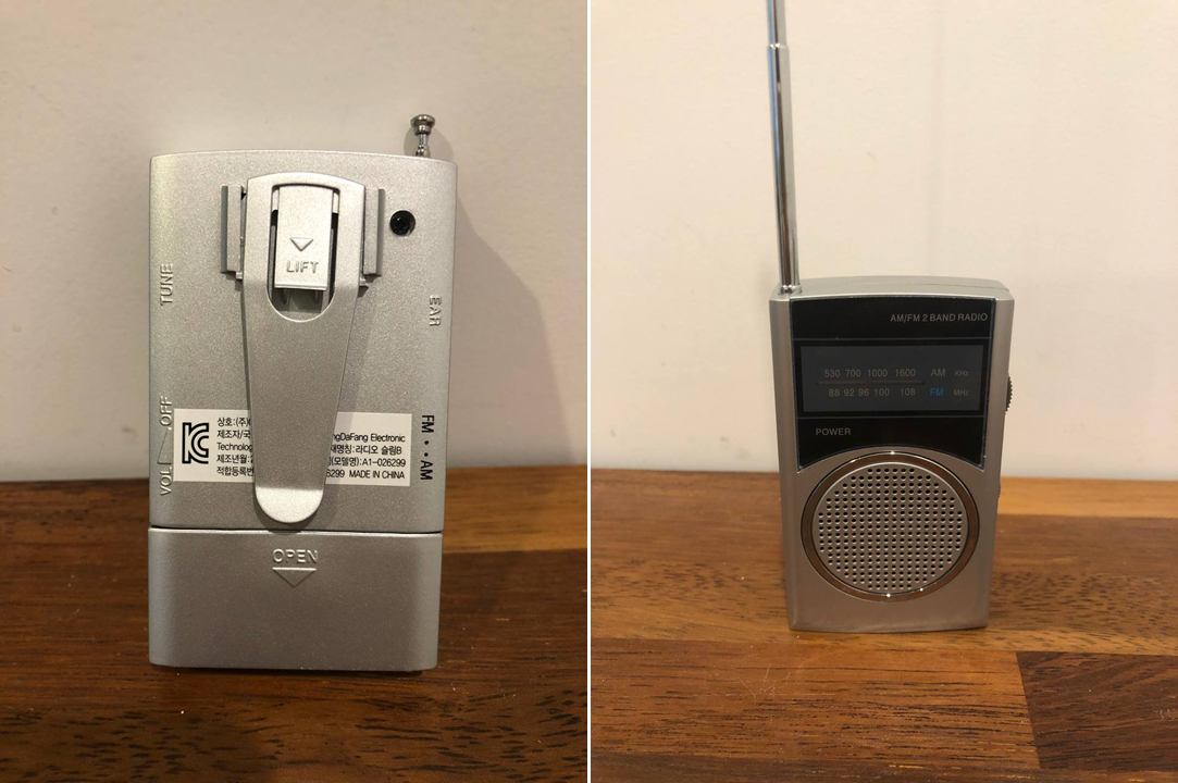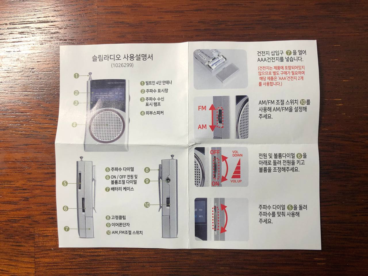 FM만 수신되는 라디오, FM/AM 모두 수신되는 라이오로 두 종류가 있더라고요. 저는 AAA 건전지 2개가 들어가는 조금 작은 FM/AM 겸용 라디오를 샀습니다.