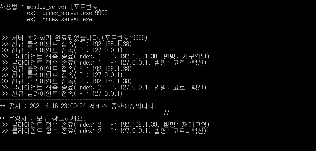 여기까지가 서버 코드에 대한 설명으로 다음은 채팅 서버 전체 소스입니다.