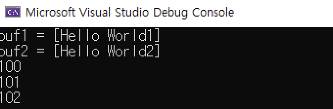 1 2 3 4 5 6 7 8 9 10 11 12 13 14 15 16 17 18 19 20 21 22 23 24 25 26 27 28 29 30 31 32 33 34 35 36 37 38 39 40 41 42 43 44 45 46 47 48 49 50 51 | #define _CRT_SECURE_NO_WARNINGS 1 #include <stdio.h> #include <stdlib.h> #include <string.h> int main() { char* buf1=NULL; char* buf2=NULL; int* num = NULL; buf1 = (char*)malloc(sizeof(char) * 50); // 50바이트 할당 if (buf1 == NULL) { printf("메모리 할당 오류.\n"); exit(0); } //memset(buf1, 0, 50); strcpy(buf1, "Hello World1"); printf("buf1 = [%s]\n", buf1); free(buf1); //할당한 메모리 해제 buf2 = (char*)calloc(100, sizeof(char)); // 100바이트 할당 if (buf1 == NULL) { printf("메모리 할당 오류.\n"); exit(0); } strcpy(buf2, "Hello World2"); printf("buf2 = [%s]\n", buf2); free(buf2); //할당한 메모리 해제 num = (int*)calloc(3, sizeof(int)); //정수 할당 int * 3 if (buf1 == NULL) { printf("메모리 할당 오류.\n"); exit(0); } num[0] = 100; num[1] = 101; num[2] = 102; for(int i=0; i<3; i++) printf("%d\n", num[i]); free(num); //할당한 메모리 해제 return 0; } | cs |