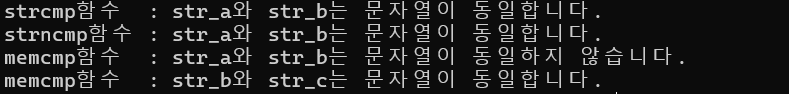 printf("memcmp함수 : str_b와 str_c는 문자열이 동일합니다.\n");