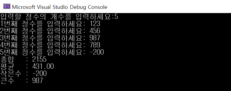 printf("입력할 정수의 개수를 입력하세요:");
