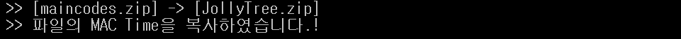 예제는 mainCodes.zip 파일의 MAC Time을 읽어서 jollytree.zip 파일에 그대로 복사하는 기능이 포함되어 있으며 MAC Time 은 GetFileTime, SetFileTime 함수에 의해 복사됩니다.