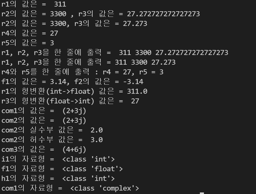 print("r2의 값은 = %d, r3의 값은 = %.3f" %(r2, r3)) #변수 여러개 출력