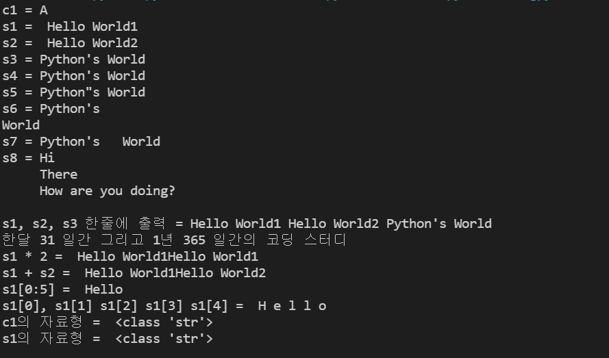 파이썬은 문자열 연산, 인덱싱, 슬라이싱, 길이 구하기 등을 지원합니다. 이번 포스팅에서는 기본적인 문자열 변수 선언, 초기화, 출력에 대해 정리하고 나머지 자세한 내용은 별도의 예제로 정리해보고자 합니다.