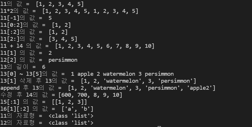 print("l1 + l4 의 값 = ", l1 + l4) #리스트 연산